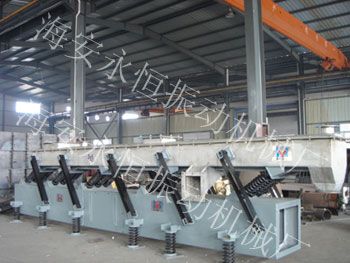 慣性振動(dòng)輸送機(jī)用于各種粒狀、中等塊度以下的非粘性物料(含水量小于5%)。比較適宜輸送高磨耗、高溫度(300℃以下)物料。如水泥熟料、烘干熱礦炸、砂等。本機(jī)有如下特點(diǎn):
