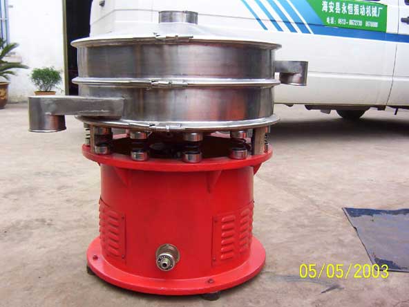 GD型圓形旋轉振動篩是一種篩分設備。該機由底座上的普通電機通過橡膠聯軸器帶動激振器轉動,使篩機產生水平運動和繞水平軸搖擺振動的空間復合運動。篩中料層受剪切,并上下翻該,細顆料迅速接觸篩面,過孔分級。