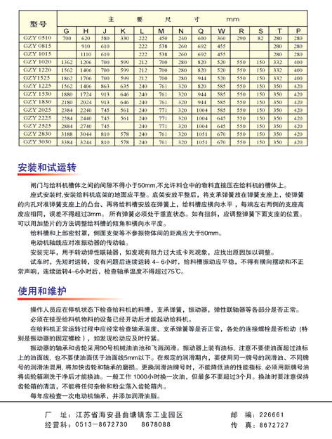 1.生產率的確定:本系列振動給料機(震動給料機,化工給料機)的生產率是以河砂為標準物料給出的(堆比重為1.6T/m3)。當物料堆比重大于1.6T/m3時,其產量可按額定值選取;當物料的堆比重在1.2~1.6T/m3時,其產量可達到額定產量的0.9~1.0倍。當物料堆比重在0.8~1.2T/m3時,其產量可過到額定值的0.8~0.9倍。物料堆比重小于1.6T/m3時,須適當增加料層厚度,以提高產量。